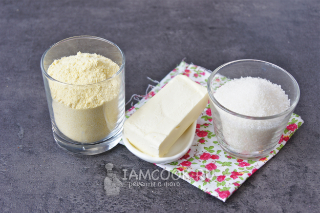 Сразу подготовьте все нужные продукты для приготовления ингушской халвы из кукурузной муки.