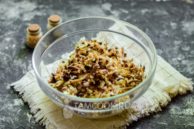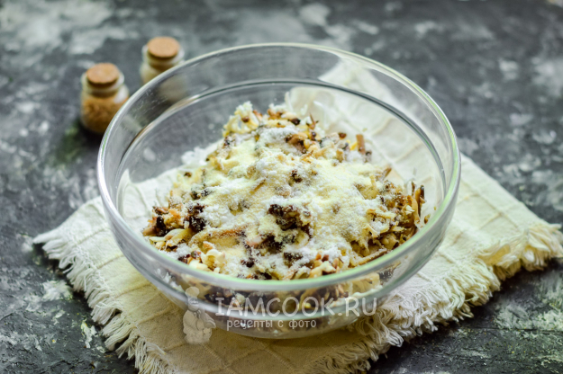 Грибы вымыть и просушить, натереть на средней терке, переложить грибную стружку в миску.