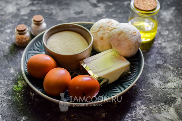 Подготовить все продукты для яичных котлет с грибами и плавленым сыром.