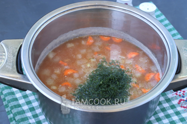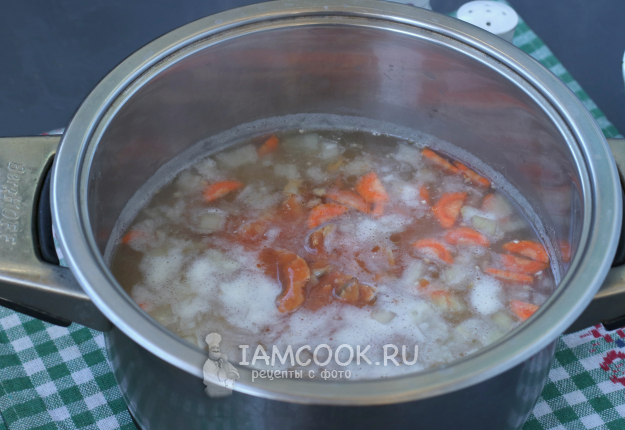 Перемешать суп ложкой, накрыть крышкой и снять с огня.