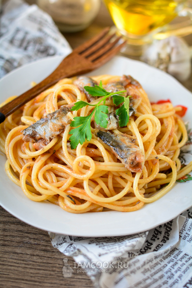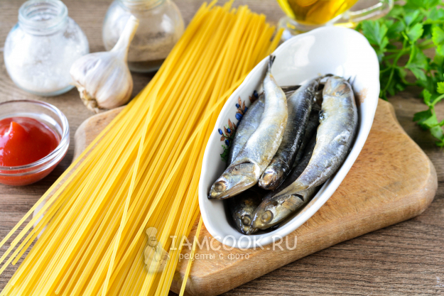 Подготовьте все ингредиенты для приготовления пасты (спагетти) с анчоусами.