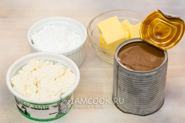 Для приготовления творожного крема с вареной сгущенкой понадобятся следующие продукты. Творог должен быть однородный.