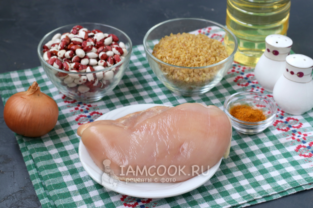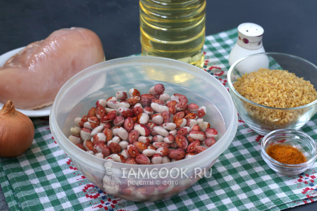 Ингредиенты для приготовления булгура с курицей и фасолью - перед вами.