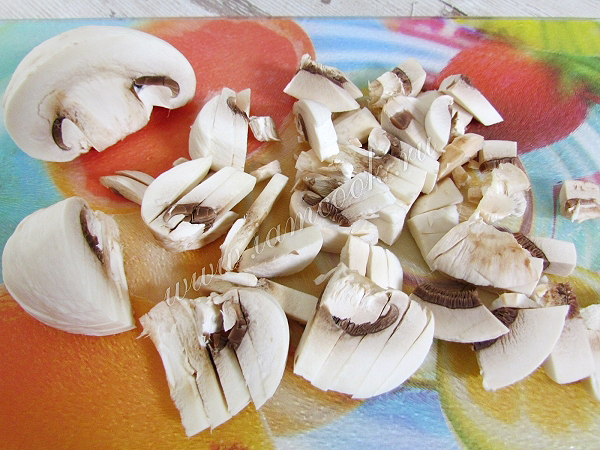 Грибы тщательно вымойте и нарежьте соломкой.