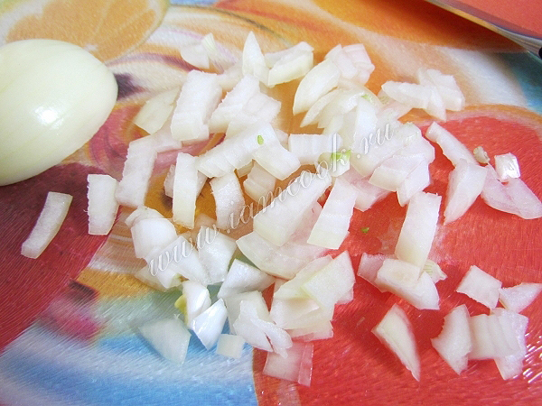 Лук нарежьте кубиками.