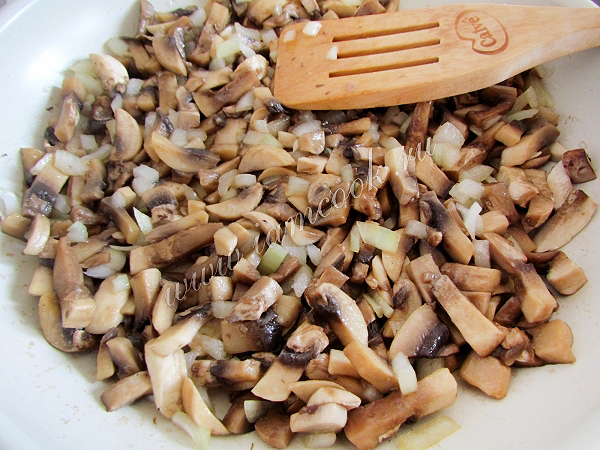 В небольшом количестве растительного масла обжарьте грибы и лук до готовности, периодически перемешивая. Посолите по вкусу.