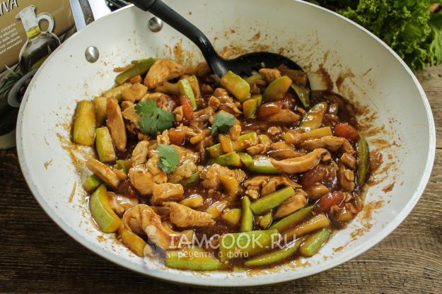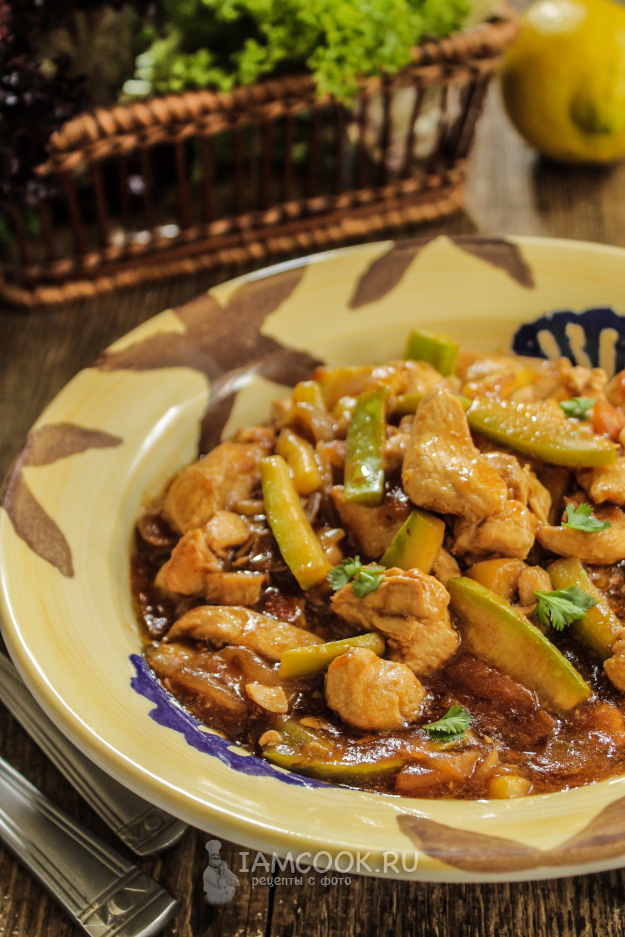 Куриное филе с кабачками в соевом соусе готово, подавайте самостоятельно или с гарниром.