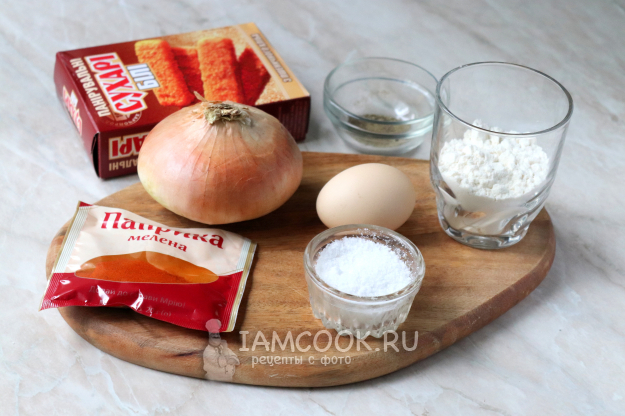Для приготовления луковых колец в духовке нам понадобятся следующие ингредиенты.