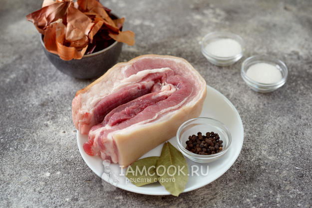 Для приготовления вареного подчеревка в луковой шелухе нам понадобятся следующие продукты.