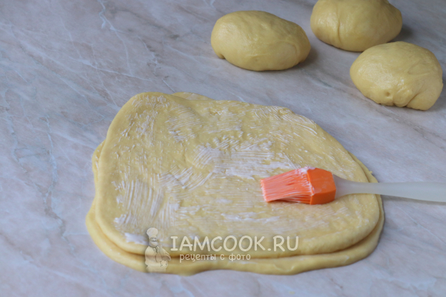 Поверх неё выложите следующую лепёшку и снова промажьте маслом.