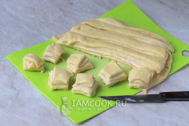 И так, пока не закончится всё тесто. Верхний пласт смазывать не нужно.