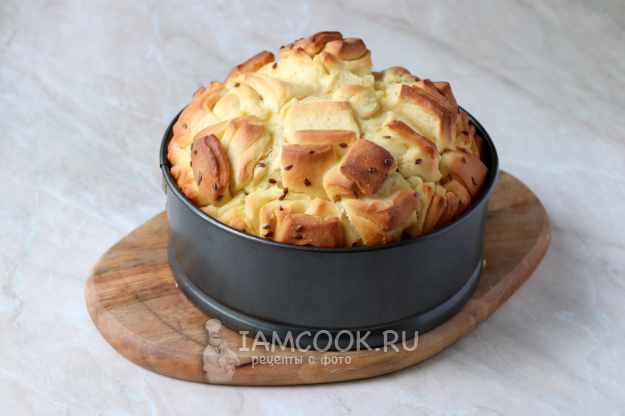 Накройте форму полотенцем и оставьте на 30-40 минут для повторного подхода. Поверхность посыпьте семенами льна (кунжута, мака и т.п.).