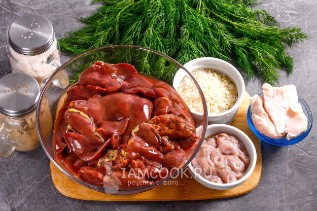 Подготовьте необходимые ингредиенты для печеночной колбасы с рисом и начнем кулинарить! Я использую куриную печень, вы можете готовить колбасу из свиной, бараньей, индюшиной печени и т.д., главное, вымочите ее в молоке или воде. Очищенные кишки промойте, обязательно пропустите внутрь каждой из них воду, проверяя на наличие отверстий. Сало поместите в морозилку на 10-15 минут, чтобы его можно было нарезать.