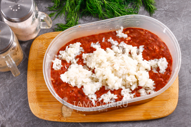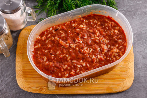 В таком виде емкость поместите в холодильник, прикрыв сверху пакетом или пищевой пленкой, чтобы фарш не обветрился. Он должен настояться не менее 2-4 часов. Время от времени перемешивайте его, чтобы чесночный аромат разошелся по всей массе.