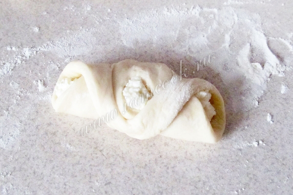 Чтобы творог в начинке не растекался, советую брать не пастообразный, а сухой зерненый творог. Тот, который в пачках хорошо идет в крем и в тесто, но не в начинку.