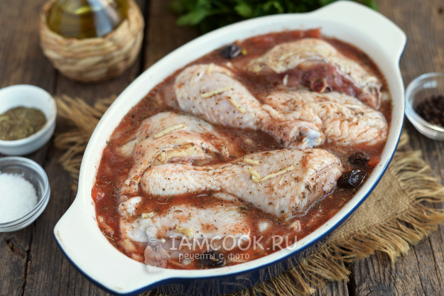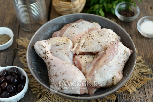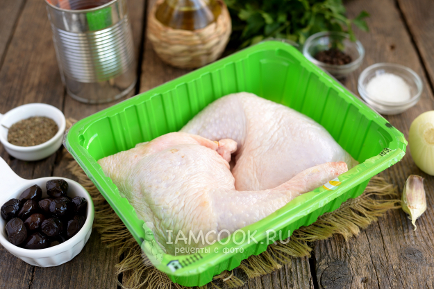 Подготовьте необходимые продукты для приготовления курицы по-провански в духовке. Окорочка берите крупные, весом около килограмма.