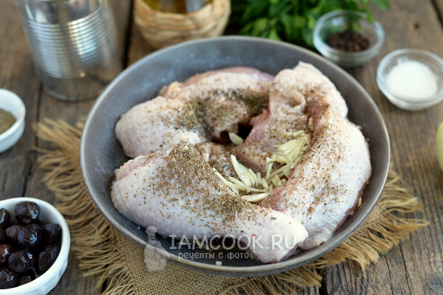 Натрите куски курицы со всех сторон, оставьте на время, чтобы впитала все эти ароматы.
