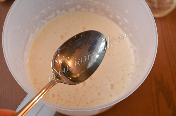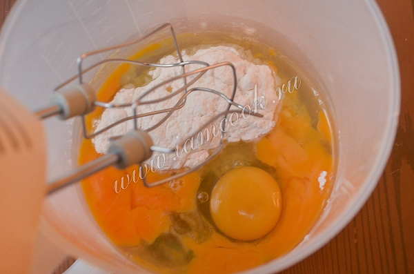Яйца взбить с сахарной пудрой, пока масса не станет воздушной.