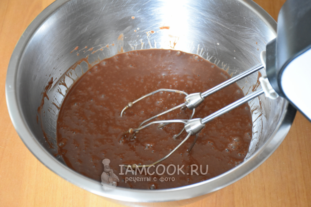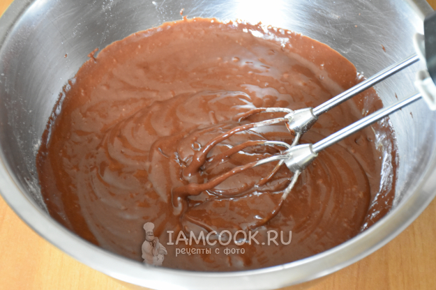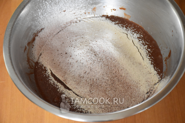 Соединить муку, какао, разрыхлитель, соль и просеять в миску.