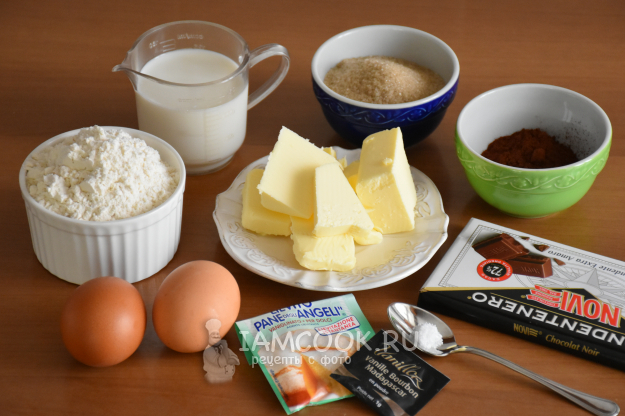 Для приготовления шоколадных бельгийских вафель понадобятся следующие ингредиенты.