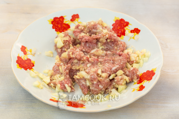 Туда же добавьте нарезанные мелко лук и чеснок.