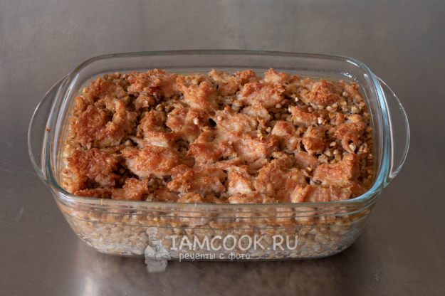 Рецепт для очень ленивых хозяек: тут нужно только смешать продукты, поставить их в духовку и включить её. Крупа получается мягкой, а мясо - с корочкой. Минус такого способа приготовления - он очень долгий, блюдо готовится 45 минут. С другой стороны, если духовка с таймером, и вам нужно куда-то уйти, тогда, наоборот, как раз получается очень удобно.