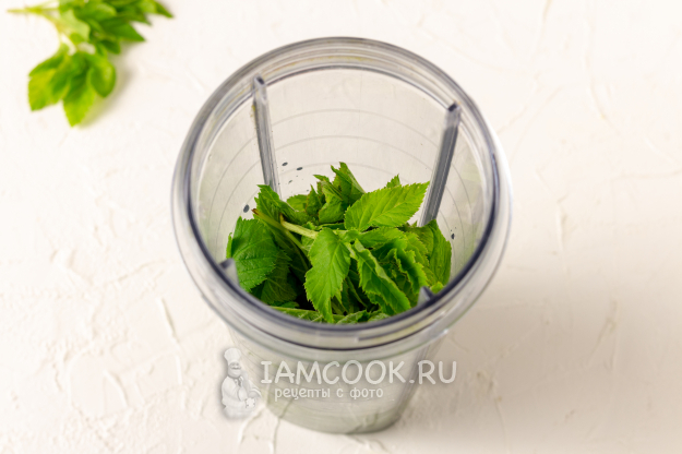 Приступим. Хорошо промываем сныть водой. Затем стряхиваем капли и кладем траву в блендер, вливаем 130 мл воды. Хорошо взбиваем. Чем лучше измельчите зелень, тем больше пользы от нее получите. Взбивать лучше больше минуты, независимо от мощности блендера.