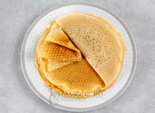 Я привыкла печь очень тонкие блины, а по этому рецепту получаются плотные блинчики – тесто слишком вязкое. Я разбавляла его понемногу, достигла желаемой консистенции, чтобы получались тонкие блины, но они прилипали и рвались, несмотря на смазанную маслом сковороду.
