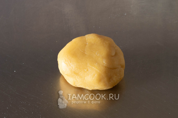 Смешиваем миксером песочное тесто из масла, сахара-песка, желтка и муки до получения крупнокалиберной крошки, потом вымешиваем ком руками (недолго).