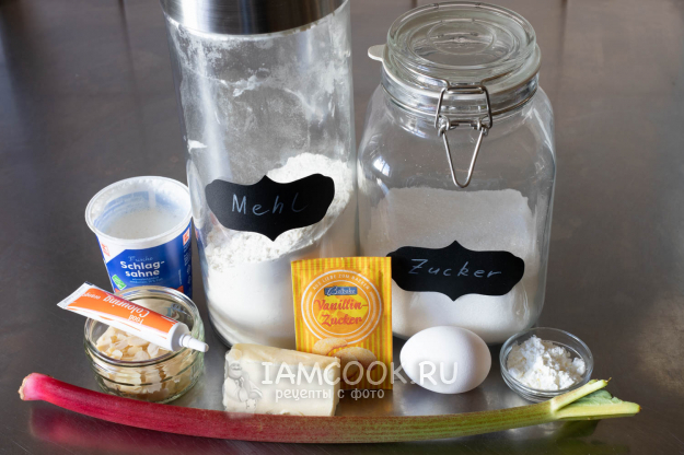 Перед употреблением песочному торту с ревенем, меренгой и сливочным кремом необходимо постоять в холодильнике как минимум 2 часа - иначе его просто чисто не нарежешь.