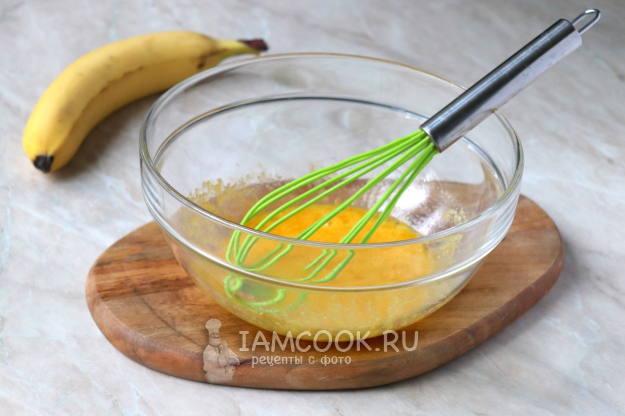 В отдельной миске разомните спелый банан, используя для этого вилку.