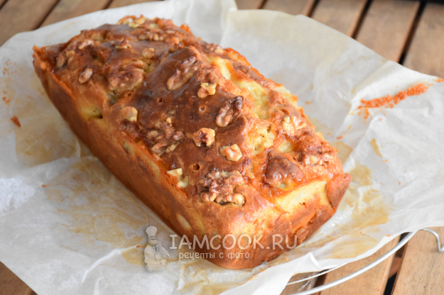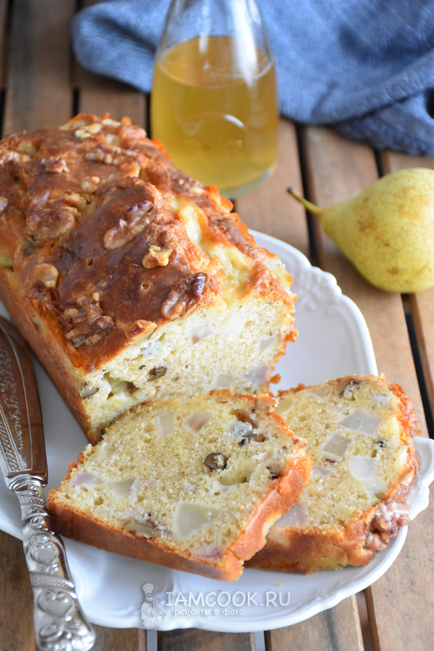 Закусочный кекс с сыром, грушами и грецкими орехами готов. Приятного аппетита!