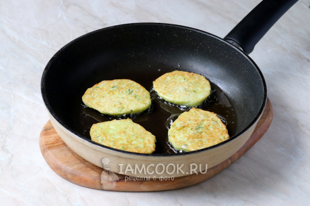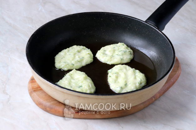 Налейте растительное масло на сковороду, прогрейте его и выложите столовой ложкой тесто, формируя небольшие оладьи.