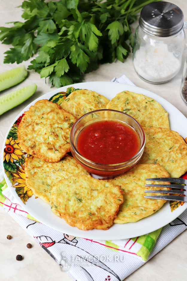 Вот и всё, наши оладьи из огурцов готовы. Они получаются очень нежными и вкусными. Отлично сочетаются с различными соусами, а также с зеленью и овощами. Подавать их лучше в тёплом виде, хотя и остывшие они ничем не хуже.