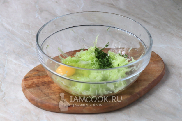 Добавьте мелко нарезанный укроп, куриное яйцо и специи по вкусу.