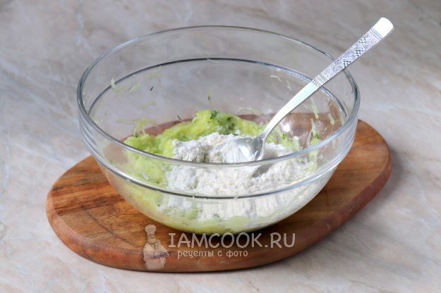 Снова перемешайте, чтобы не было мучных комочков. Тесто должно получиться средней густоты. Если во время жарки оладьи будут плохо переворачиваться, можно добавить ещё немного муки, ведь её количество будет зависеть от того, насколько вы тщательно отжали жидкость из огурца, и от размера используемого яйца.