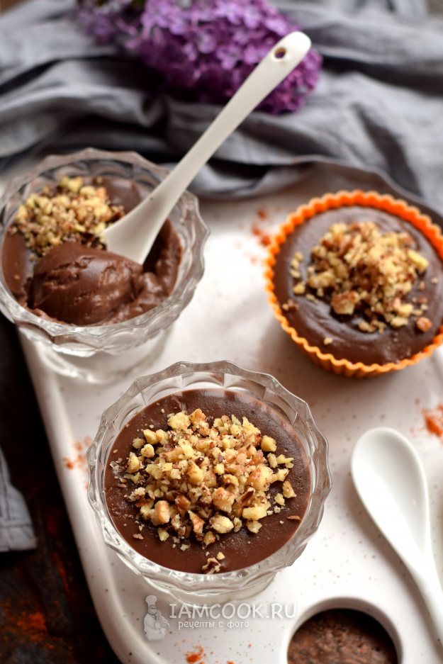 После того, как масса остынет, можно поставить десерт в холодильник на 1-2 часа - так он загустеет ещё больше. Ну а дальше присыпьте дроблеными орехами и подавайте.