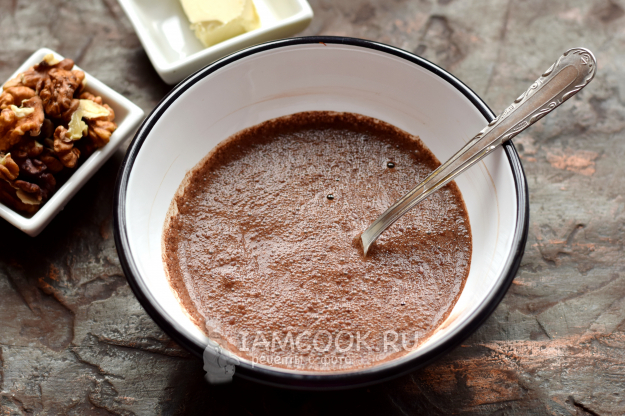 Возьмите продукты для приготовления шоколадного десерта с молоком и орехами за 10 минут.