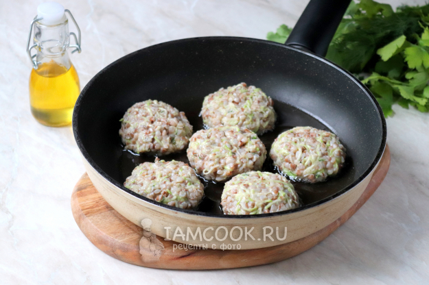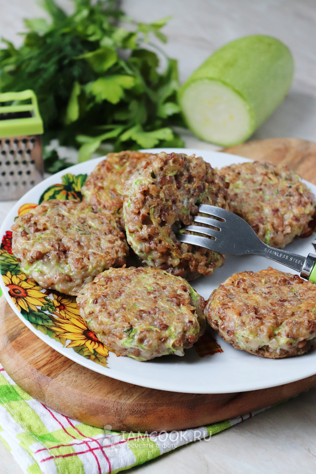 Возьмите все необходимые ингредиенты для приготовления котлет из гречки и кабачков.