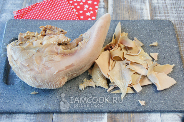Выньте язык из воды и сразу очистите кожицу.