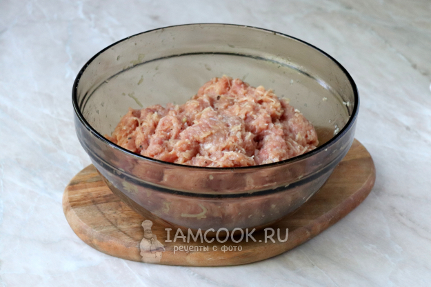 Фарш тщательно перемешайте и отбейте о дно миски.