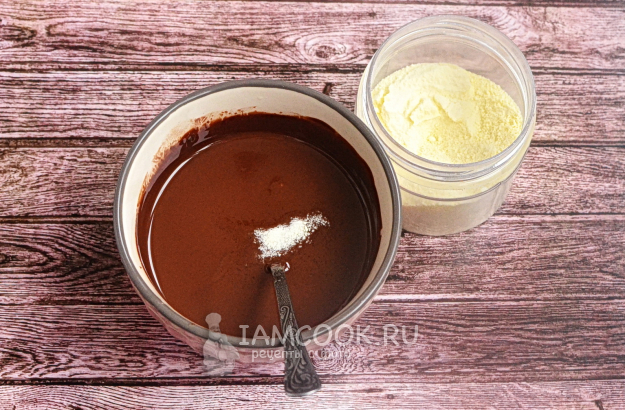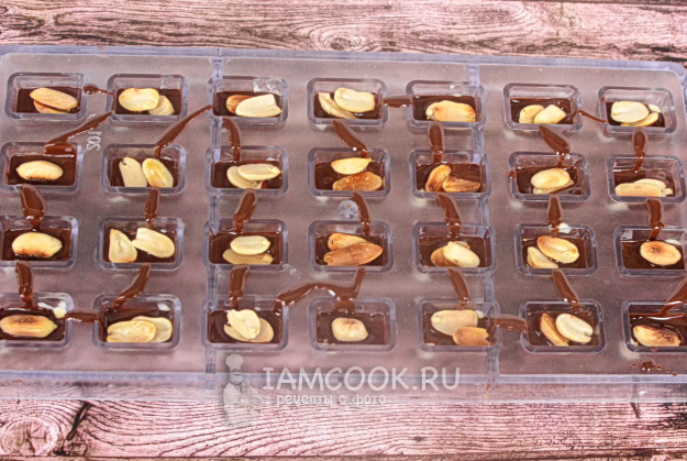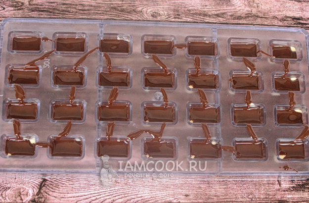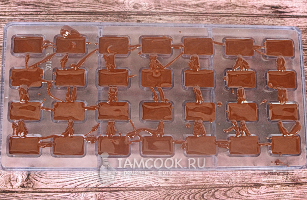 Зальем немного темного шоколада, только чтобы закрыть дно.