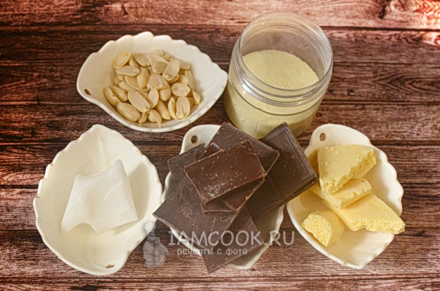 Возьмите продукты для приготовления арахиса в шоколаде в домашних условиях.