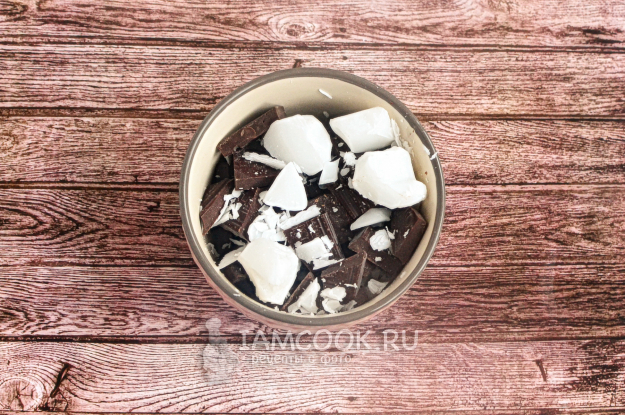 А тем временем растопим темный шоколад вместе с какао-маслом.
