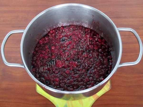 Затем варите бруснику в сахарном сиропе до загустения и потемнения, например, в два приема доводя до закипания и на среднем огне по 10-15 минут.