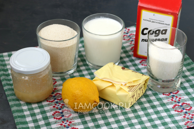 Для приготовления лимонного манника без яиц и муки нам потребуются следующие ингредиенты.