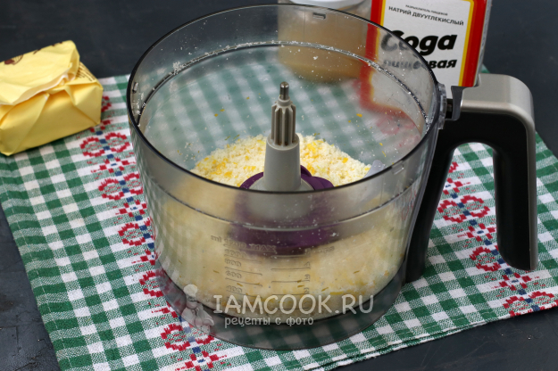 С лимона снять цедру и вместе с сахаром перекрутить в блендере. Таким образом мы получим лимонный сахар.