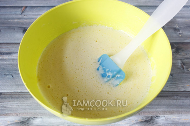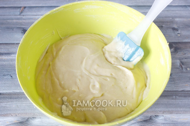 Замешиваем тесто средней густоты - можно ложкой, лопаточкой или миксером на малых оборотах.