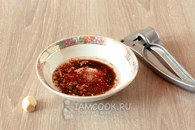 Отдельно приготовьте соус. Для этого смешайте все перечисленные в перечне ингредиенты. Количество перца можно регулировать по вкусу, острый перец заменить на полуострую паприку. Несмотря на то, что здесь добавлены хлопья красного перца, блюдо получилось не острым.