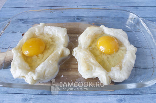 Вбиваем по яйцу, присаливаем, не затрагивая желток.